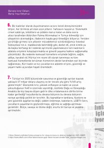8.CEDAW Komitesi’nin ardı ardına yaptığı gözden geçirmelerde Türkiye’de Kürt kadınların etnik kimliklerinden kaynaklı çok katmanlı ayrımcılığa maruz kaldığı ve haklara erişimde yapısal engellerle karşılaştığı açıkça belirtilmiştir. Komite, Türkiye’ye bu eşitsizliklerin derhal giderilmesi ve Kürt kadınların medeni, siyasi, ekonomik, sosyal ve kültürel haklardan eksiksiz biçimde yararlanmasının sağlanması yönünde tavsiyelerde bulunmuştur. Çok katmanlı ayrımcılık yalnızca Kürt kadınların değil sınıfsal, etnik, cinsel yönelim, inanç ya da engellilik temelinde ayrımcılığa maruz kalan tüm kadınların ortak deneyimidir. Bu nedenle, devlet kişilere karşı işlenen tüm suçlarda ayrımcılık ve nefret saikini ağırlaştırıcı neden olarak kabul etmeli nefret kültürünün toplumsal bilinçte yayılmasının önüne geçecek yasal ve politik adımları ivedilikle atmalıdır. Devlet, imza attığı uluslararası sözleşmelerden doğan yükümlülüklerini yerine getirmeli ve Kürt kadınların da dahil olduğu tüm ayrımcılığa maruz kalan kimlikler için eşit yurttaşlık temelinde kapsamlı politikalar geliştirmelidir.